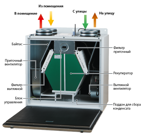 Рекуператор повністю розділяє повітряні потоки, завдяки чому виключається передача повітрям припливу запахів і забруднень від витяжного повітря.
