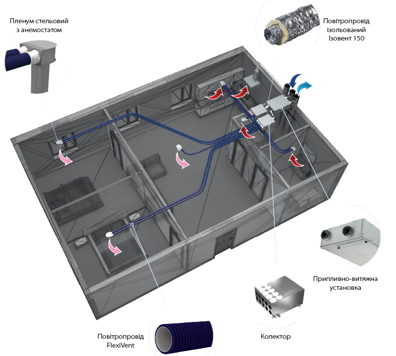 При цьому тепло витяжного повітря передається припливному повітрю через високоефективний пластинчастий рекуператор.