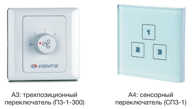 Установка комплектується сенсорним або трипозиційним перемикачем швидкостей.