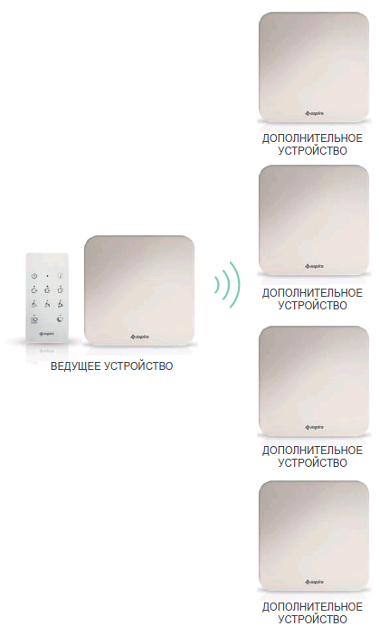 Рекуператор Aspira ECOCOMFORT SAT 160 RF можна використовувати як одиночну систему для одного приміщення або підключивши до 63 од. вентиляційних пристроїв (SAT AP19982) в одну мережу з одним блоком керування для декількох приміщень.