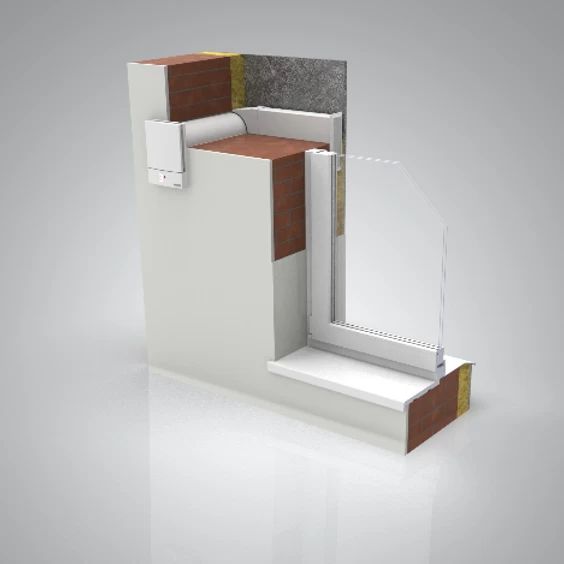 Конструкція рекуператора передбачає виведення повітроводу в товщу теплоізоляційного шару стіни, що дозволяє приховати повітряні ґрати у схилі вікна. Що отримуємо в результаті: ефективна вентиляція та виведення надлишку вологи, а також захист від плісняви у будівлі з невидимими зовні кришками повітроводу.