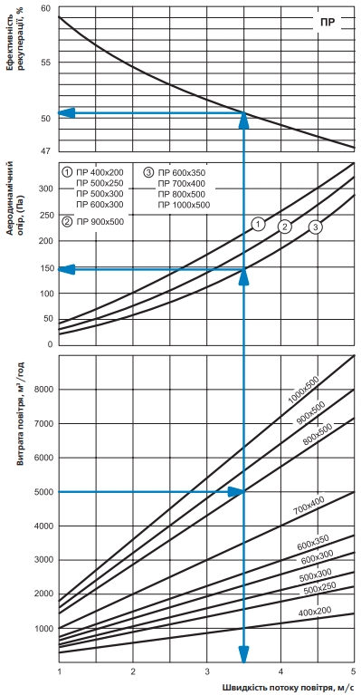 Аеродинамічні характеристики Рекуператор Вентс ПР 400х200