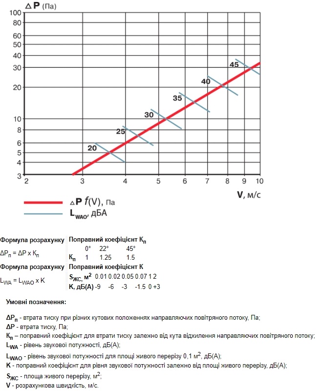 Аеродинамічні характеристики Решітка Вентс ДР 100х100