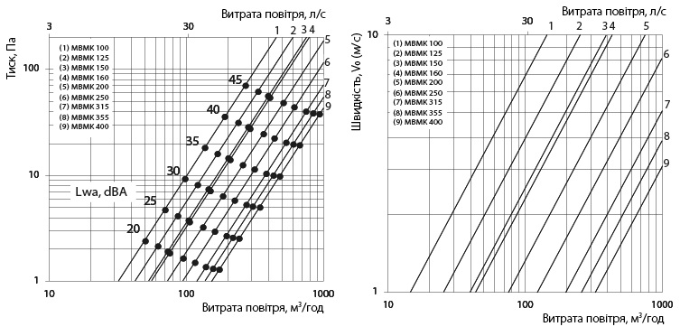 Аеродинамічні характеристики Решітка Вентс МВМК 150