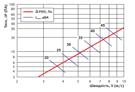 Аеродинамічні характеристики Решітка Вентс НД 950x350