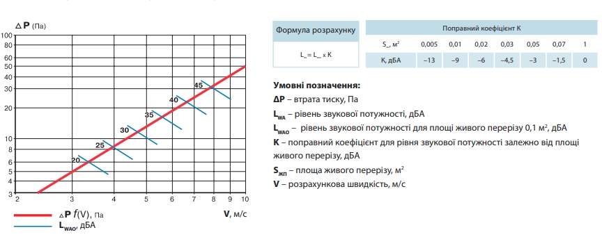 Аеродинамічні характеристики Решітка Вентс ОНФ 100x100