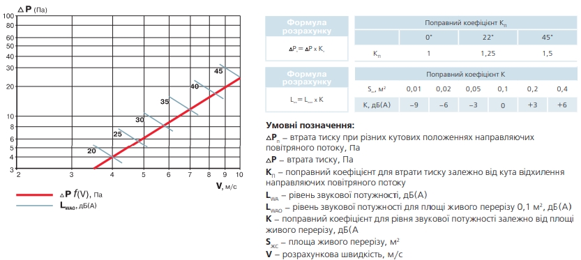 Аеродинамічні характеристики Решітка Вентс ОРВ 400x400