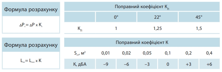 K – поправочний коефіцієнт для рівня звукової потужності в залежності від площі живого перерізу, дБА