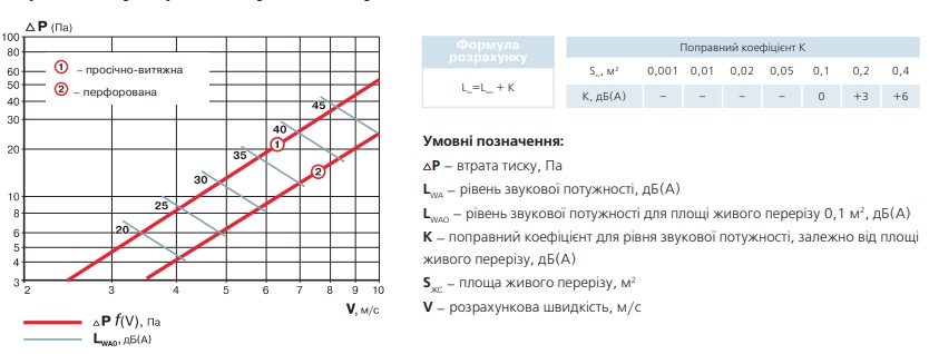 Аеродинамічні характеристики Решітка Вентс РП 2 700x400