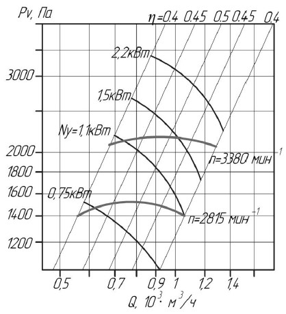 Аеродинамічні характеристики вентиляторів ВЦ 10-28 №2,5 (0,75 /3000)