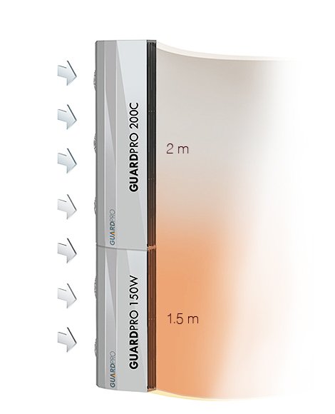 Завіси GUARDPRO завдяки високій ефективності і використанню модульної конструкції дозволяють створювати повітряний бар'єр на отворах будь-яких розмірів, а також GUARDPRO може бути додатковим джерелом тепла.