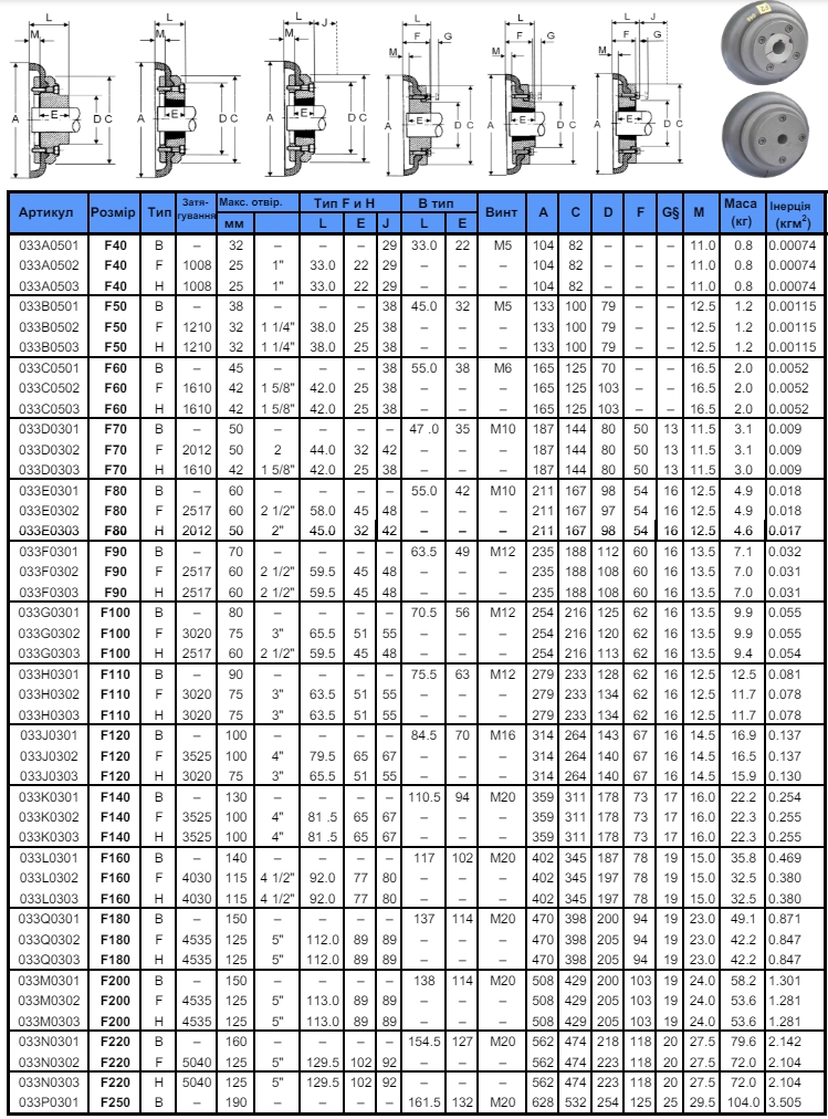 Шинні муфти складаються з двох металевих маточок, з'єднаних один з одним за допомогою колісної шини (еластичний елемент). Постачаються шинні муфти у таких виконаннях: