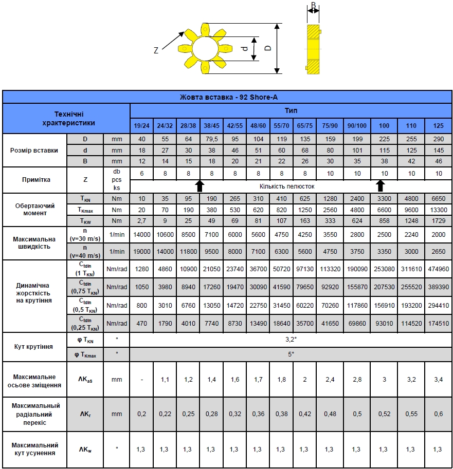 Муфти призначені для роботи з досить великими навантаженнями. Вони передають крутний момент через еластичний зіркоподібну вставку, що знаходиться під тиском, яка поглинає удари та крутильні вібрації. Цей елемент маслостійкий, хімічно стійкий, термостійкий та електропровідний. Еластичні елементи доступні в різних кольорах залежно від їхньої твердості.