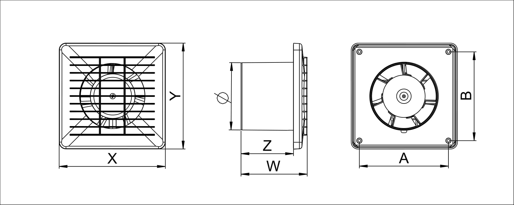 Габаритные размеры вытяжного вентилятора Awenta Basic WB100
