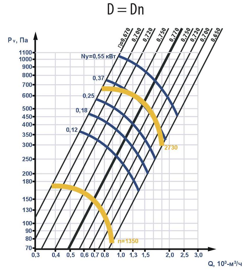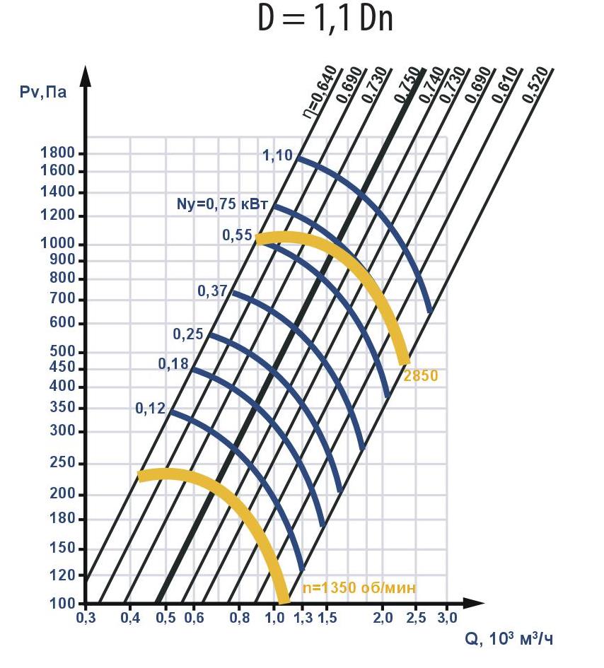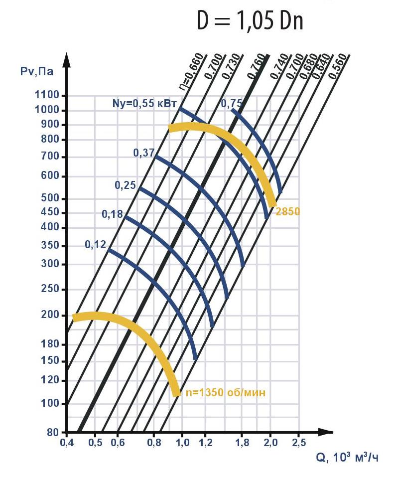 Технические характеристики вентиляторов ВЦ 4-75 №2,5 (0,37/1500)