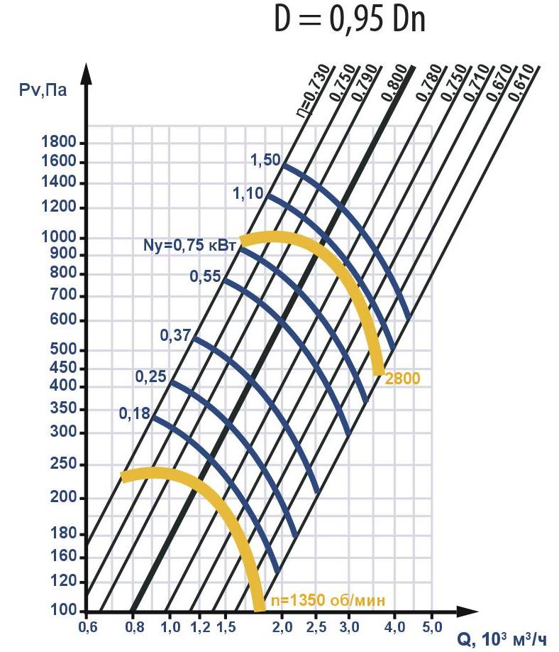 Технические характеристики вентиляторов ВЦ 4-75 №3,15 (0,55/1500)