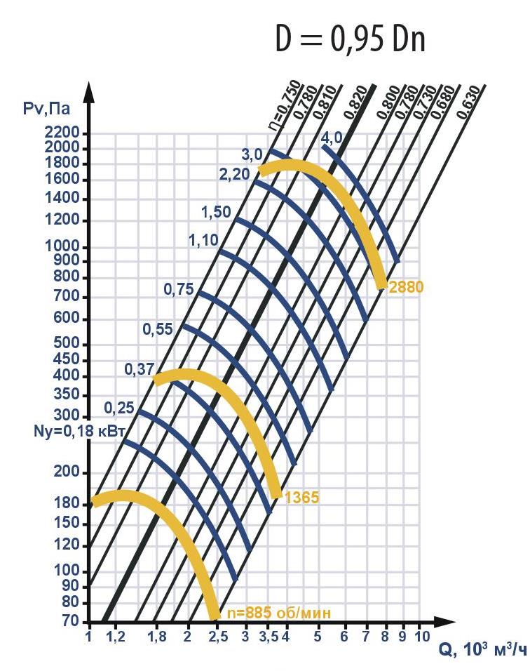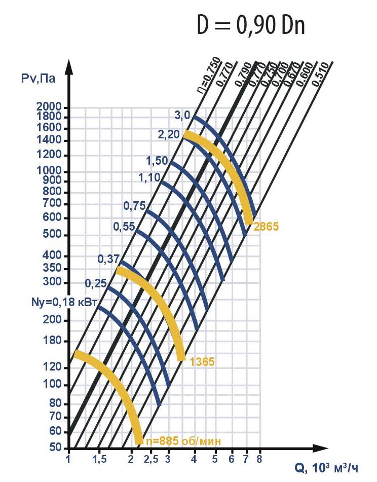 Технические характеристики вентиляторов ВЦ 4-75 №4 (0,55/1000)
