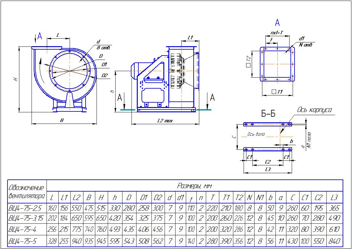 | Типоразмер | Частота | Мощность | Производительность | Полное давление | |||