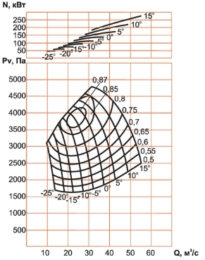 Аэродинамические характеристики вентилятора ВО-12/8,5ДН-1500