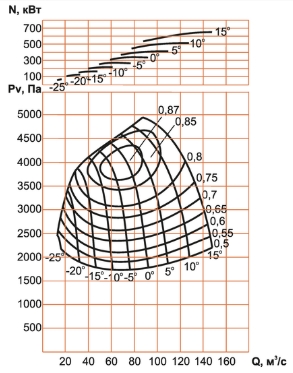 Аэродинамические характеристики вентилятора ВО-16/8,5ДН-1500