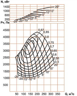 Аэродинамические характеристики вентилятора ВО-26/16ДН-750