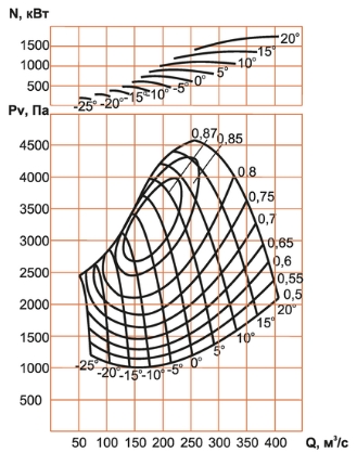 - Регулирование вентилятора осуществляется изменением угла установки лопаток рабочего колеса (при остановленном вентиляторе) и закрылками направляющего аппарата (на ходу), а также частотно-регулируемым приводом;