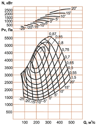 - Регулирование вентилятора осуществляется изменением угла установки лопаток рабочего колеса (при остановленном вентиляторе) и закрылками направляющего аппарата (на ходу), а также частотно-регулируемым приводом;