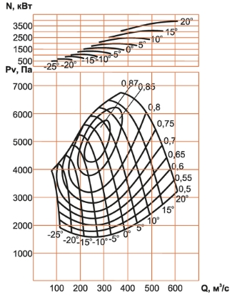 Аэродинамические характеристики вентилятора ВО-32/20ДН-750