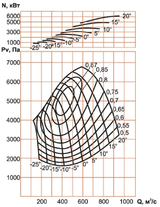 Аэродинамические характеристики вентилятора ВО-40/25ДН-600