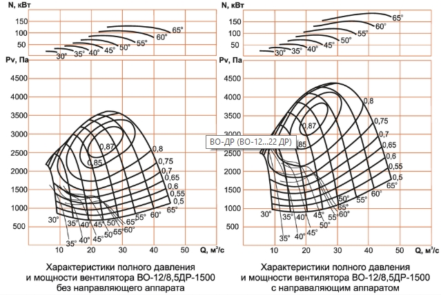 Аэродинамические характеристики вентилятора ВО-12/8,5ДР-1500
