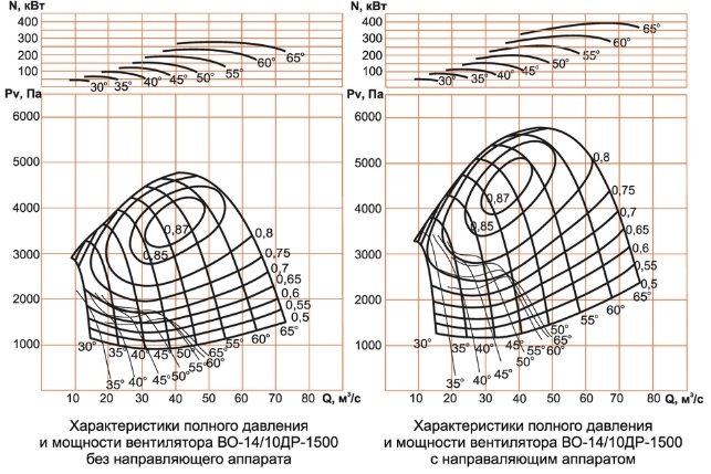 Аэродинамические характеристики вентилятора ВО-14/10ДР-1500