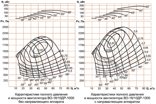 Аэродинамические характеристики вентилятора ВО-16/10ДР-1000