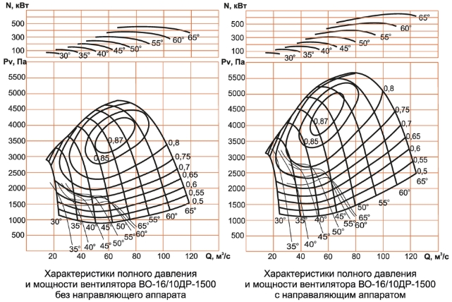 Аэродинамические характеристики вентилятора ВО-16/10ДР-1500