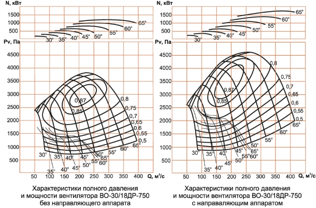 Аэродинамические характеристики вентилятора ВО-30/18ДР-750