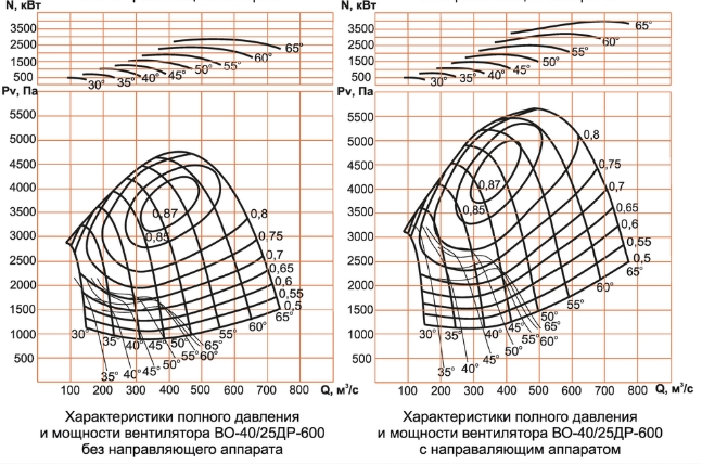 Аэродинамические характеристики вентилятора ВО-40/25ДР-600