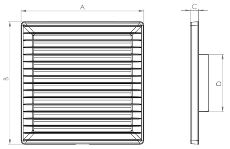 Габаритные размеры Решетка Решетка AirRoxy AKUSzSs 170x170 fi 150 Graphite
