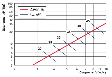 Аэродинамические характеристики Решетка Вентс НД 1250x350