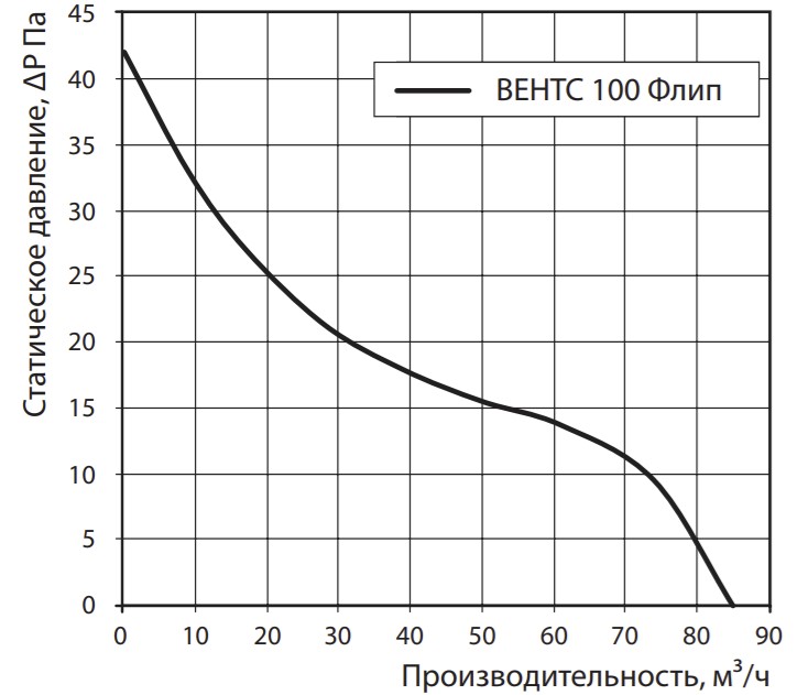 Аэродинамические характеристики осевого вентилятора ВЕНТС 100 Флип