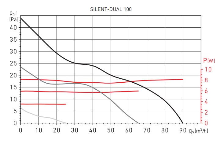Аэродинамические характеристики бытового осевого вентилятора Soler & Palau SILENT DUAL 100
