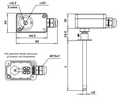 Датчики поставляются с клеммной коробкой и имеют регулируемую длину погружения 100, 150, 200 или 400 мм.
