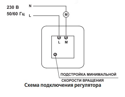 Значение минимальной скорости вращения задается переменным резистором на плате управления регулятора.