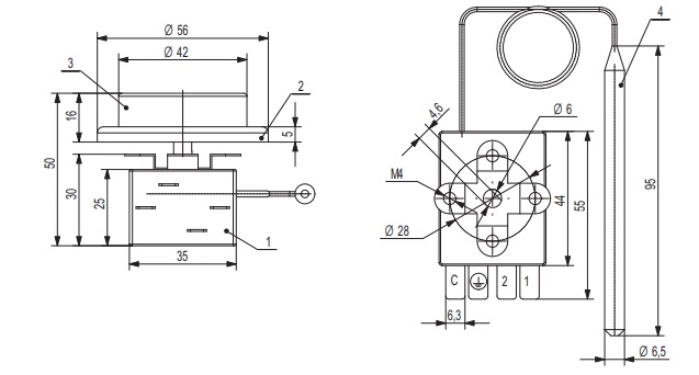 Габаритные размеры Внешний терморегулятор Вентс ТС-1-90