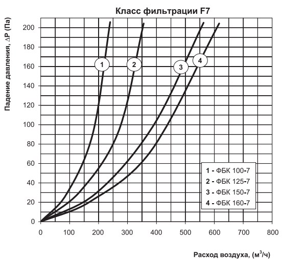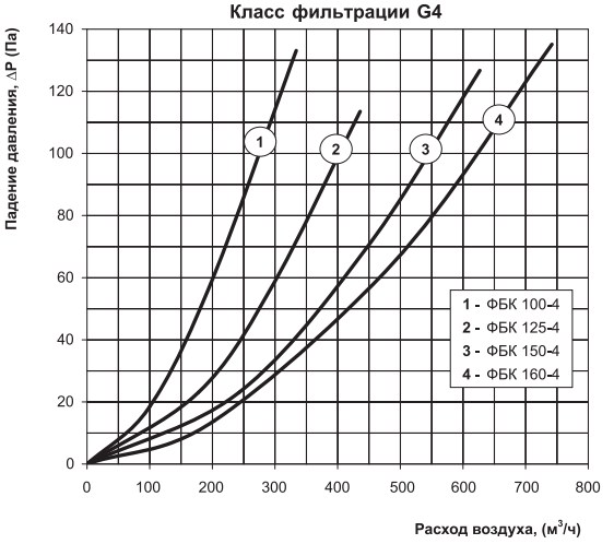 Аэродинамические характеристики фильтра ВЕНТС ФБК 150