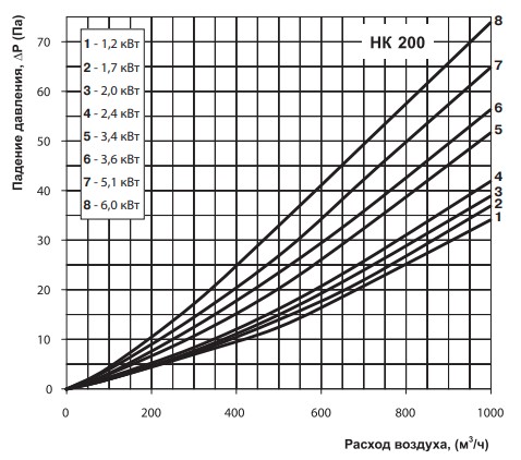 Аэродинамические характеристики Электрический нагреватель ВЕНТС НК 200-6,0-3