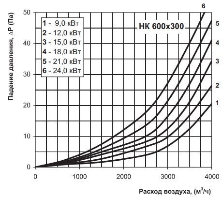 Аэродинамические характеристики Электрический нагреватель ВЕНТС НК 600x300-9,0-3