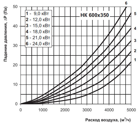 Аэродинамические характеристики Электрический нагреватель ВЕНТС НК 600x350-9,0-3