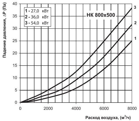 Аэродинамические характеристики Электрический нагреватель ВЕНТС НК 800x500-27,0-3