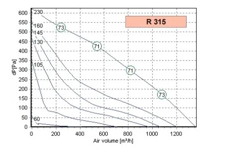 Аэродинамические характеристики канального трубного вентилятора Rosenberg R 315