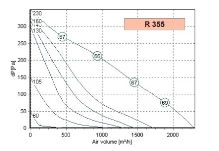 Аэродинамические характеристики канального трубного вентилятора Rosenberg R 355