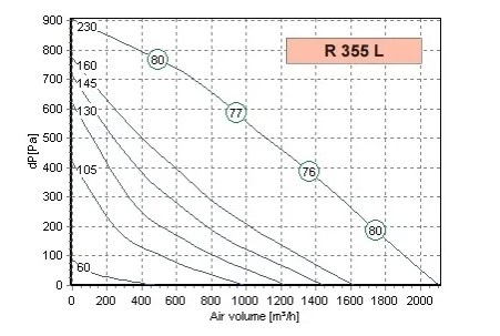 Аэродинамические характеристики канального трубного вентилятора Rosenberg R 355L
